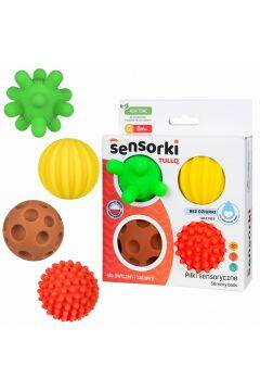 Zestaw czterech miękkich piłek sensorycznych przeznaczonych ćwiczeń integracji sensorycznej oraz zabawy. Każda piłeczka posiada inny rozmiar i inną fakturę, dzięki czemu dostarcza różnych wrażeń czuciowych. Piłki sensoryczne Tullo nie posiadają dziurki, dzięki temu świetnie sprawdzają się podczas kąpieli. Woda nie przedostaje się do środka, a dzieci mają kontakt tylko z zewnętrzną warstwą zabawki.