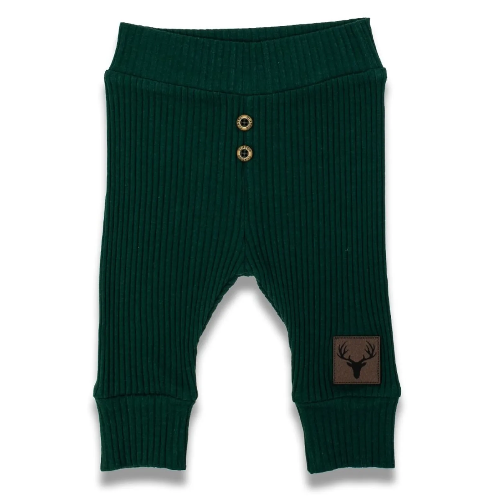 Modne spodnie dla chłopca z prążkowanej bawełny z niewielką ilością elastanu w kolorze butelkowej zieleni.