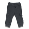 Modne spodnie dla chłopca wykonane z bawełny dresowej w kolorze grafitowym z niewielką ilością elastanu.