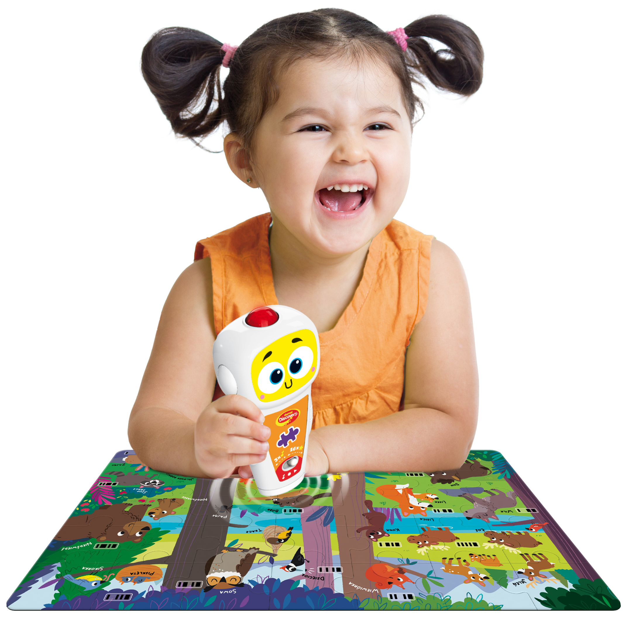 Robot Robby zaprasza na zabawę w układanie i odkrywanie! Pierwszy etap zabawy polega na ułożeniu dwóch obrazków ze znajdujących się w zestawie puzzli. Gdy już maluch upora się z tym zadaniem, do gry wkroczy wesoły robocik, który przygotował dla najmłodszych ponad 350 dźwięków i aż 16 różnych gier, a wśród nich szukanie zwierzątek na obrazku, dopasowywanie ich odgłosów, odtwarzanie sekwencji i rozpoznawanie domków zwierzaków. Dźwięki pochowane są w 32. aktywnych polach, oznaczonych kodem kreskowym. Aby robot prawidłowo odczytał pole, należy delikatnie przycisnąć końcówkę robota do kodu kreskowego, umieszczając robota pionowo nad polem.