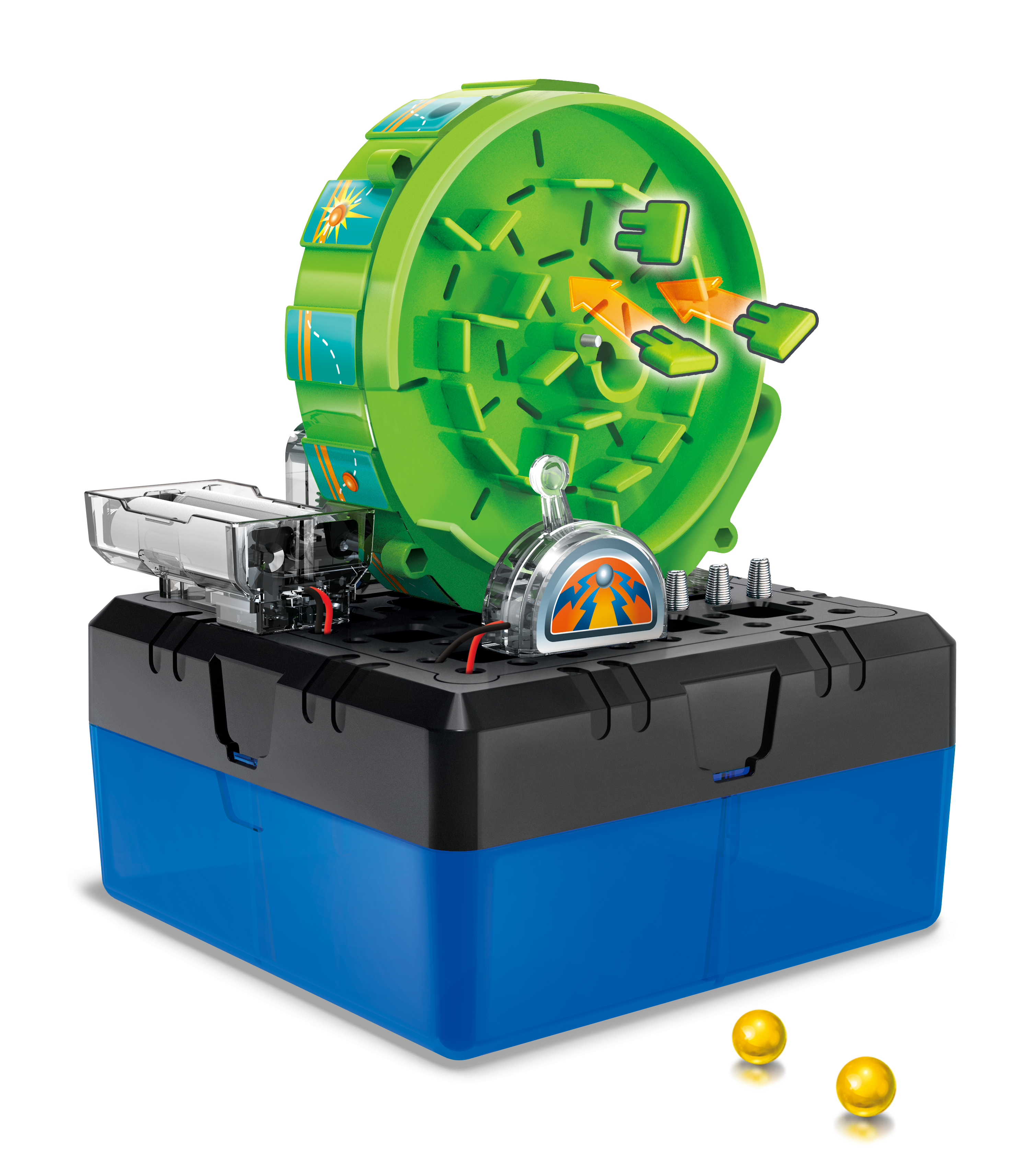Odkryj ekscytujący świat doświadczeń i poprzez zabawę poznaj podstawowe zasady fizyki! Zestaw pozwala na stworzenie obrotowego labiryntu, który wprawisz w ruch po umieszczeniu w nim baterii (niezawarte w zestawie). Wśród elementów znajduje się także ekologiczne pudełko wielokrotnego użytku, w którym, po zakończonej zabawie, można przechowywać drobne elementy zestawu.