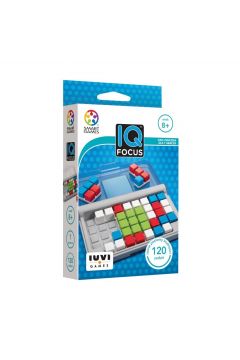 Poznaj "IQ Focus", grę logiczną ze znanej i lubianej serii IQ. W 120 całkiem nowych zadaniach, Ty i Twoje dziecko zyskacie możliwość naturalnego rozwoju swojej koncentracji. Przygotujcie planszę i spróbujcie umieścić na niej elementy we wskazany sposób. Uważajcie jednak! Liczy się tylko centralny, widoczny po zamknięciu pokrywki, obszar! To na nim musicie się skupić.