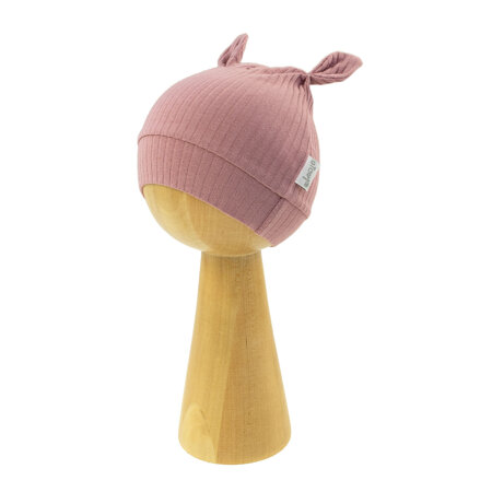 Praktyczna czapka uszyta z materiału prążkowanego w kolorze wrzosowym. Niewielka ilość elastanu sprawia, że czapeczka będzie lepiej przylegać do główki. W fasonie tym, zastosowano bezuciskowy ściągacz. Czapeczkę zdobią uszka w formie zakładek. Materiał posiada certyfikat Oeko-Tex Standard 100 Tekstylia godne zaufania.