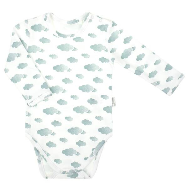 Body z długim rękawem dla chłopca, uszyte ze 100% bawełny drukowanej w lodowe chmurki.