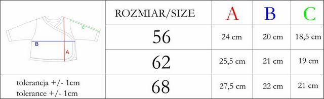 Model posiada praktyczne wywinięcia w rękawach w rozmiarze 56 ,chroniące maluszka przed zadrapaniem.