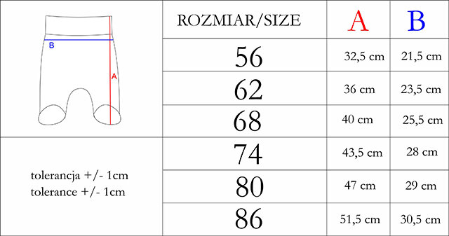 Półśpioszki mają luźny fason i lekko obniżony stan by pomieścić pieluszkę, posiadają szeroki,