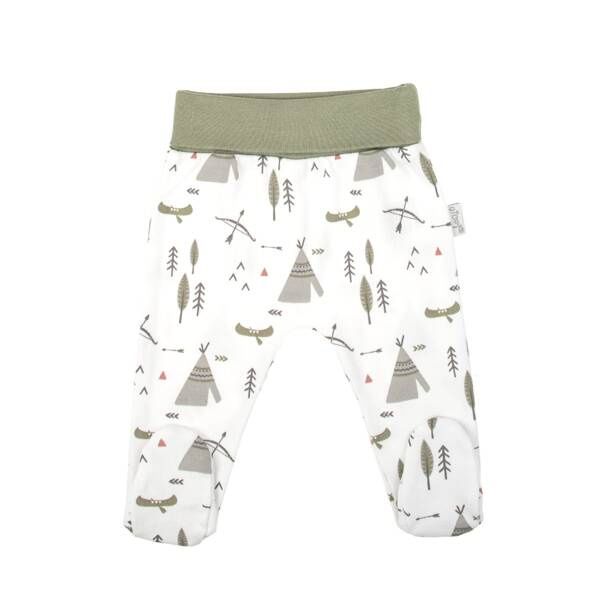 Wygodne i miękkie półśpioszki dla chłopca, uszyte ze 100% przewiewnej, białej bawełny w motyw indiański.