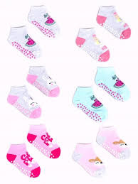 Skarpetki od spodu wykończone są antypoślizgowymi gumkami w kształcie kółek.