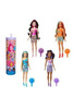 Zabawa zaczyna się już przy otwieraniu opakowania: otwórz tubkę i wyjmij lalkę Barbie pokrytą różową wzorzystą farbką Color Reveal oraz torebki-niespodzianki z ukrytą zawartością. Otwórz torebki-niespodzianki, aby odkryć ubranka i akcesoria do stylizacji: spódniczkę lub szorty z uroczym wzorkiem, kolorowe buciki, duże oryginalne kolczyki i szczotkę.