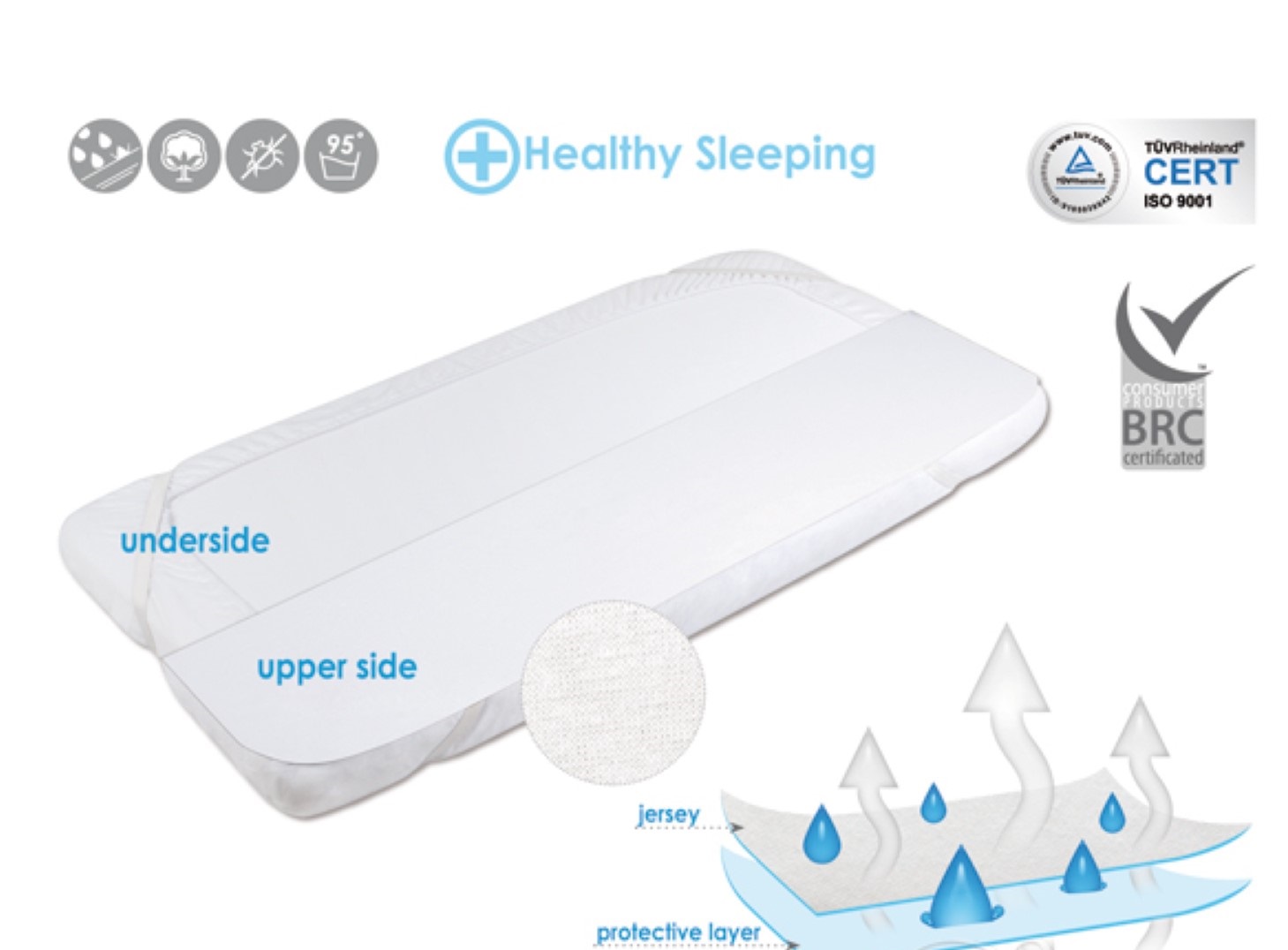 Nieprzemakalny i oddychający podkład JERSEY o wymiarach 35x75 cm to praktyczny produkt do ochrony materaca przed zabrudzeniami, wilgocią i uszkodzeniami. Wierzchnia warstwa podkładu wykonana jest Z miłej dla ciała dzianiny jersey która jest przyjemna w dotyku i zapewnia komfort użytkowania. Dolna warstwa podkładu wykonana jest z oddychającej membrany poliuretanowej która nie przepuszcza płynów, chroniąc materac przed zmoczeniem i wilgocią. Produkt posiada gumki w narożnikach co ułatwia wygodne zakładanie i chroni przed przesuwaniem się podkładu.
