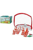 W zestawie: elementy do złożenia bramki o wymiarach 94 x 75 x 48 cm., 12 pachołków, gumowa piłka nożna, pompka do piłki, 4 kołki uziemiające, wiek: 3+.