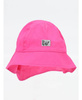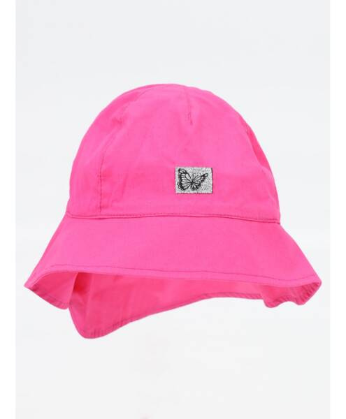Dziewczęcy kapelusz letni w kolorze różowym. Z przodu ozdobiony subtelną naszywką z motywem motylka.