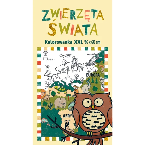 Przed Wami prawdziwa, zwierzęca mapa świata – dzięki niej dzieciaki dowiedzą się, gdzie można spotkać alpakę, koalę, niedźwiedzia i… jednorożca! Pokolorujcie świat zwierząt, używając wszystkich kredek we wszystkich kolorach!