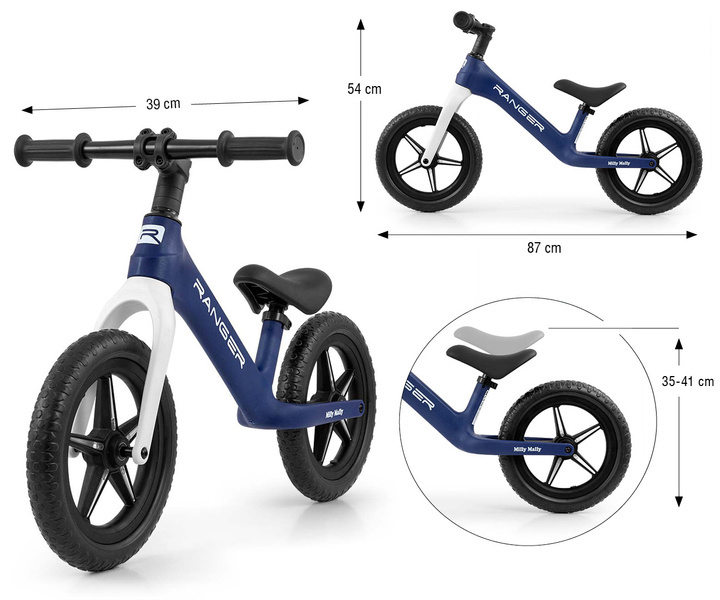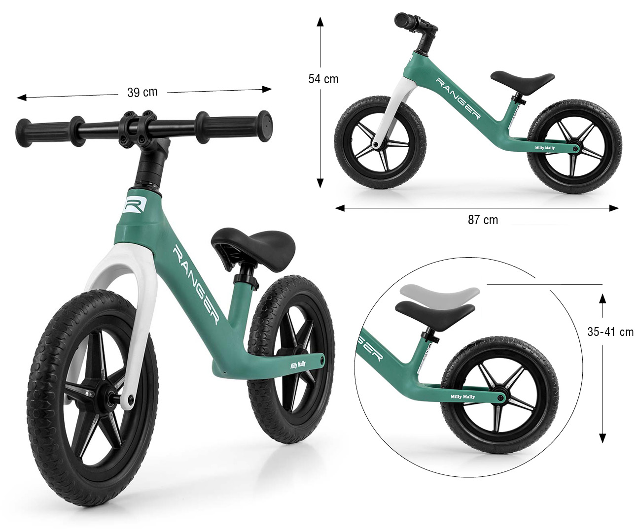 Rowerki biegowe Ranger wyróżniają się wytrzymałymi, 12-calowymi kołami wykonanymi z nowoczesnej pianki EVA, które są odporne na przebicia i nie wymagają pompowania, co sprawia, że są one bezobsługowe.