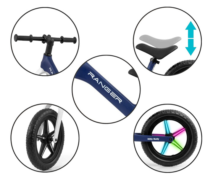 Ergonomiczne siodełko z regulacją wysokości oraz miękkim wypełnieniem zapewnia komfort jazdy i dostosowuje się do wzrostu dziecka. Model Ranger Flash jest wyposażony w łożyskowaną kierownicę i koła, a miękkie, gumowe rączki o właściwościach antypoślizgowych gwarantują pewny chwyt i wygodne prowadzenie.