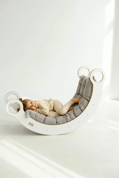 Drewniany bujak, zaprojektowany w duchu Montessori, może służyć do huśtania, ćwiczenia zmysłu równowagi, sprawdzi się także świetnie podczas swobodnej zabawy. W kilka chwil zmienimy bujak dla dzieci w sklepową ladę, tajną kryjówkę, czy dryfujący po morzu statek. Jedyne co nas ogranicza to wyobraźnia! A ta dziecięca jest niezwykle bujna!