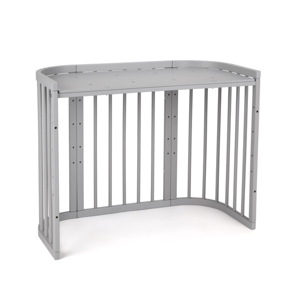 Ten elegancki, drewniany mebel sprawdzi się nie tylko jako wygodne łóżeczko, ale można go również przekształcić w duży stolik z ławeczką. Jeśli szukacie trwałego i praktycznego rozwiązania, będzie to doskonały wybór.