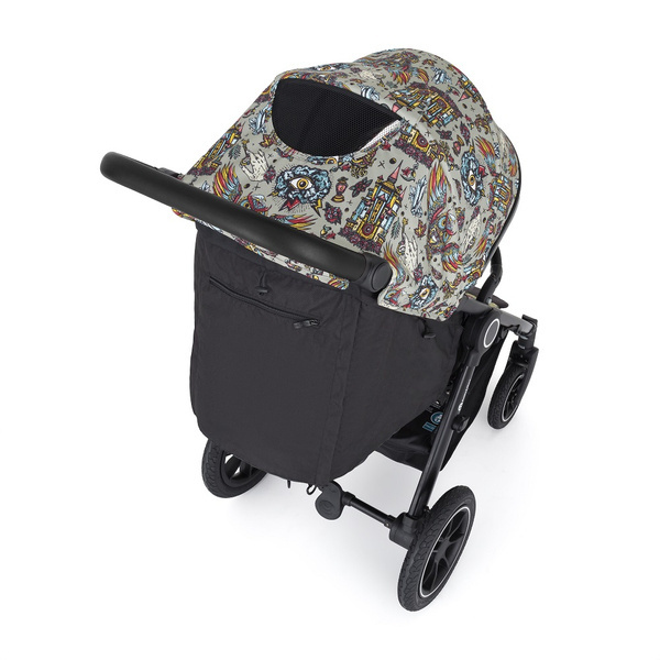 • Rozszerzana budka z ochroną przeciwsłoneczną SPF50 i okienkiem do podglądu dziecka.