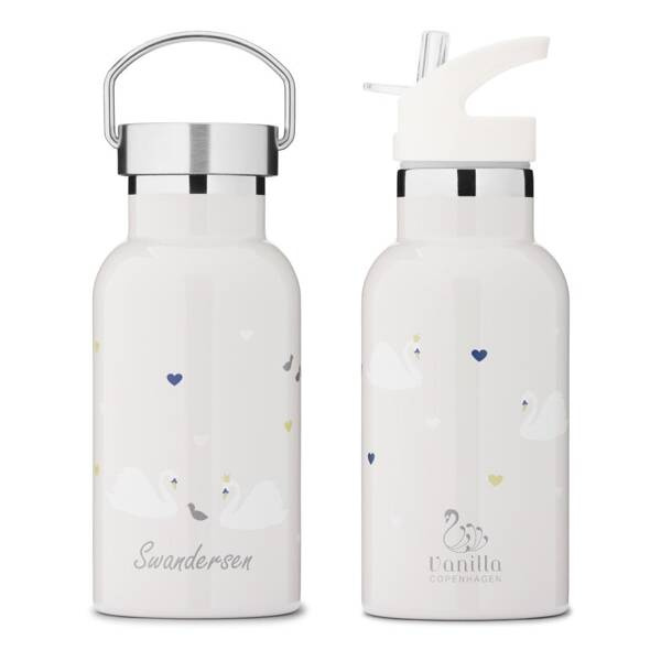 Urocza butelka termiczna dla dzieci ze stali nierdzewnej duńskiej marki Vanilla Copenhagen o pojemności 350 ml utrzymuje temperaturę napojów zimnych jak i ciepłych. Idealnie sprawdzi się do szkoły, na spacery, wycieczki i plac zabaw.