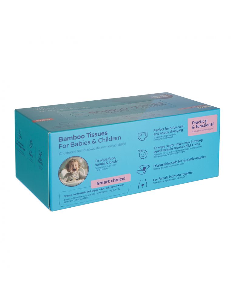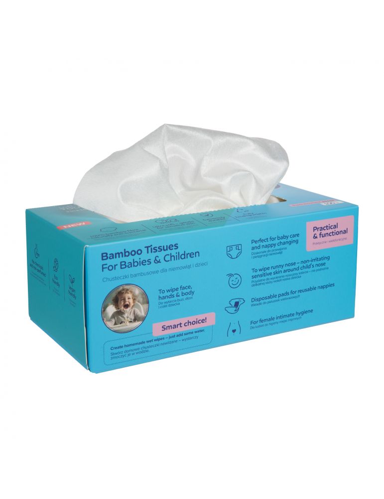 Włóknina bambusowa, z której są zrobione chusteczki jest bardzo wytrzymała – nie rozrywa się podczas użytkowania, dlatego świetnie sprawdzą się także jako domowe chusteczki nawilżane, wystarczy że zamoczysz je w wodzie.