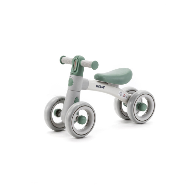Welly to 4-kołowy rowerek biegowy dla maluszków od 12-24 miesiąca życia, więc idealnie sprawdzi się jako pierwszy jeździk. Maluch porusza się na rowerku odpychając się nogami od ziemi, przez co rozwija swoją koordynację ruchową, równowagę oraz motorykę. Przemieszczanie się na rowerku Welly to nie tylko świetna zabawa, ale również forma aktywności fizycznej.