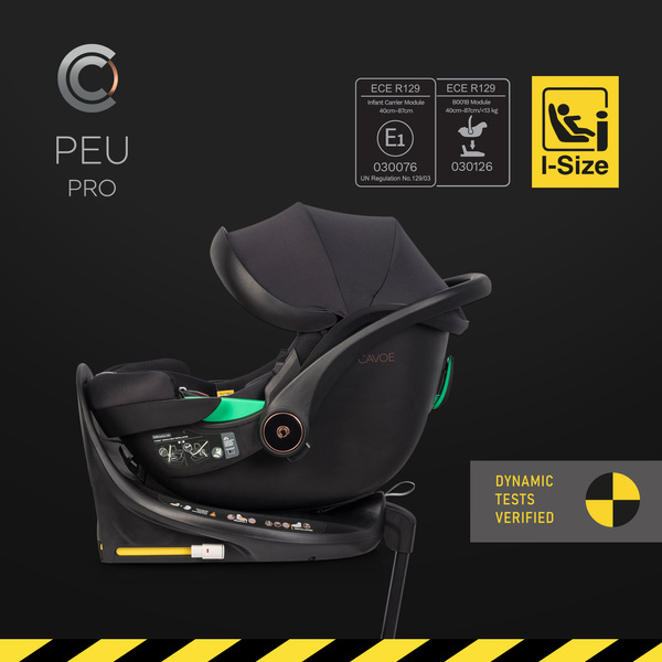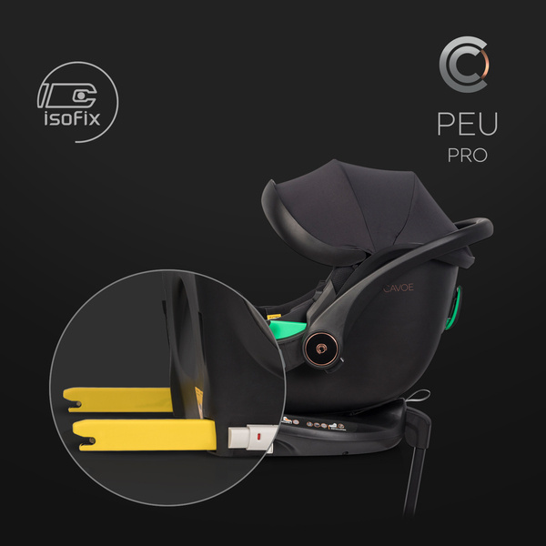 Fotelik samochodowy PEU PRO marki CAVOE przeznaczony jest dla dzieci o wzroście od 40 do 87 cm (czyli od narodzin do około 13 kg) i jest to tak zwany pierwszy fotelik samochodowy (nosidełko), który można zamontować na stelażu każdego wielofunkcyjnego wózka dziecięcego marki CAVOE oraz na większości wózków innych marek, które posiadają uniwersalne adaptery typu „maxi cosi”.