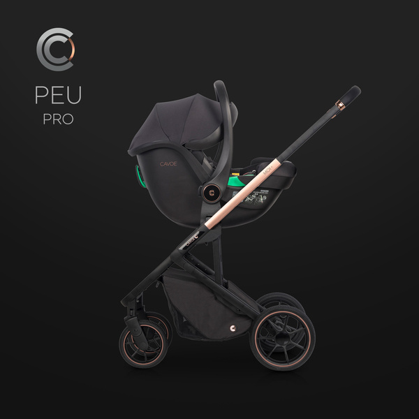 MOŻLIWOŚĆ MONTAŻU NA WÓZKU DZIECIĘCYM - fotelik samochodowy PEU można zamontować na dowolnym wózku wielofunkcyjnym marki CAVOE za pomocą właściwych dla danego modelu wózka adapterów. Dzięki najpopularniejszym uniwersalnym wpięciom typu „maxi cosi” fotelik PEU PRO można zamontować na większości wózków dziecięcych posiadających adaptery uniwersalne typu „maxi cosi”.