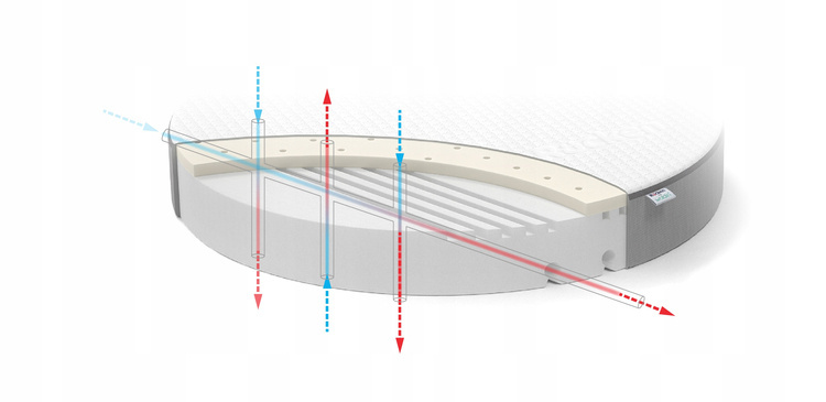 Nasza mata lateksowa posiada liczne otwory wentylacyjne, które są zintegrowane z otworami w warstwie z pianka. Dzięki temu materac maksymalnie oddycha.