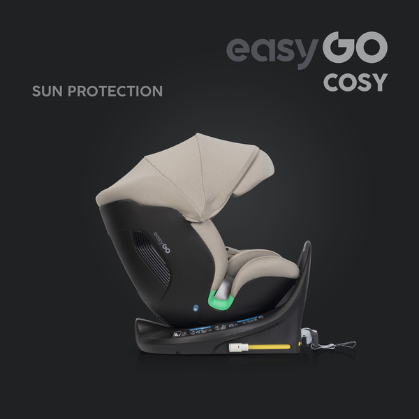 Fotelik samochodowy COSY marki EASYGO jest przeznaczony dla dzieci o wzroście od 40 do 150 cm (czyli od narodzin do około 36 kg). Posiada zintegrowaną bazę obrotową 360° ISOFIX oraz pas TOP TETHER. Dodatkowym zabezpieczeniem jest wysoka rama antyrotacyjna.