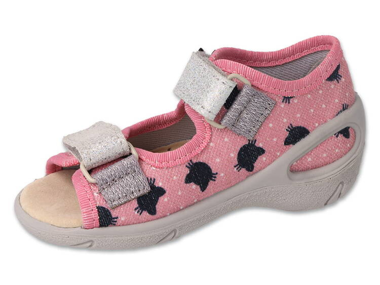 Wygodne sandały to idealny wybór na słoneczne dni. Regulowane zapięcie pozwala na swobodne dopasowanie do małej stopy dziecka. Skórzana wyściółka gwarantuje najwyższy komfort noszenia oraz ograniczenie nadmiernej potliwości. Kolorystyka jest uniwersalna i pasuje do wielu dziecięcych stylizacji. Sandałki sprawdzą się bardzo dobrze jako obuwie zamienne w żłobku lub przedszkolu dla dzieci z wyższym podbiciem.