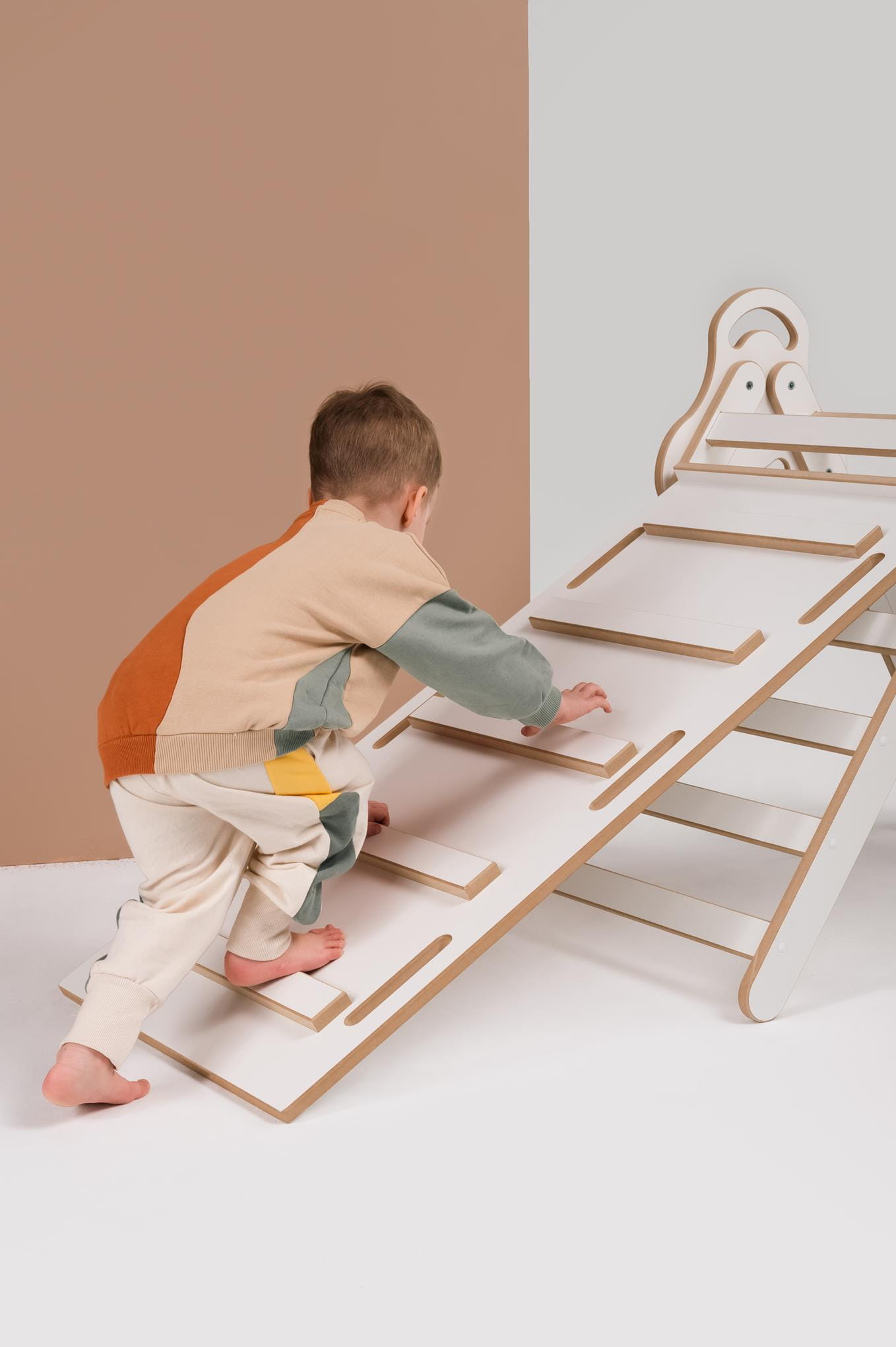 Umówmy się - każde, ale dosłownie każde dziecko uwielbia się wspinać, kombinować, sięgać wyżej! Pikler to element domowego placu zabaw, który zachęci Twojego Malucha do szaleństw i rozładowaniqa energii. Drabinka Trójkąt wspiera rozwój motoryki dużej oraz ruchów naprzemiennych.