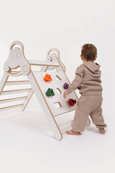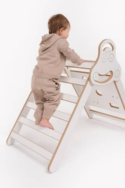 Umówmy się - każde, ale dosłownie każde dziecko uwielbia się wspinać, kombinować, sięgać wyżej! Pikler to element domowego placu zabaw, który zachęci Twojego Malucha do szaleństw i rozładowania energii. Drabinka Trójkąt wspiera rozwój motoryki dużej oraz ruchów naprzemiennych.