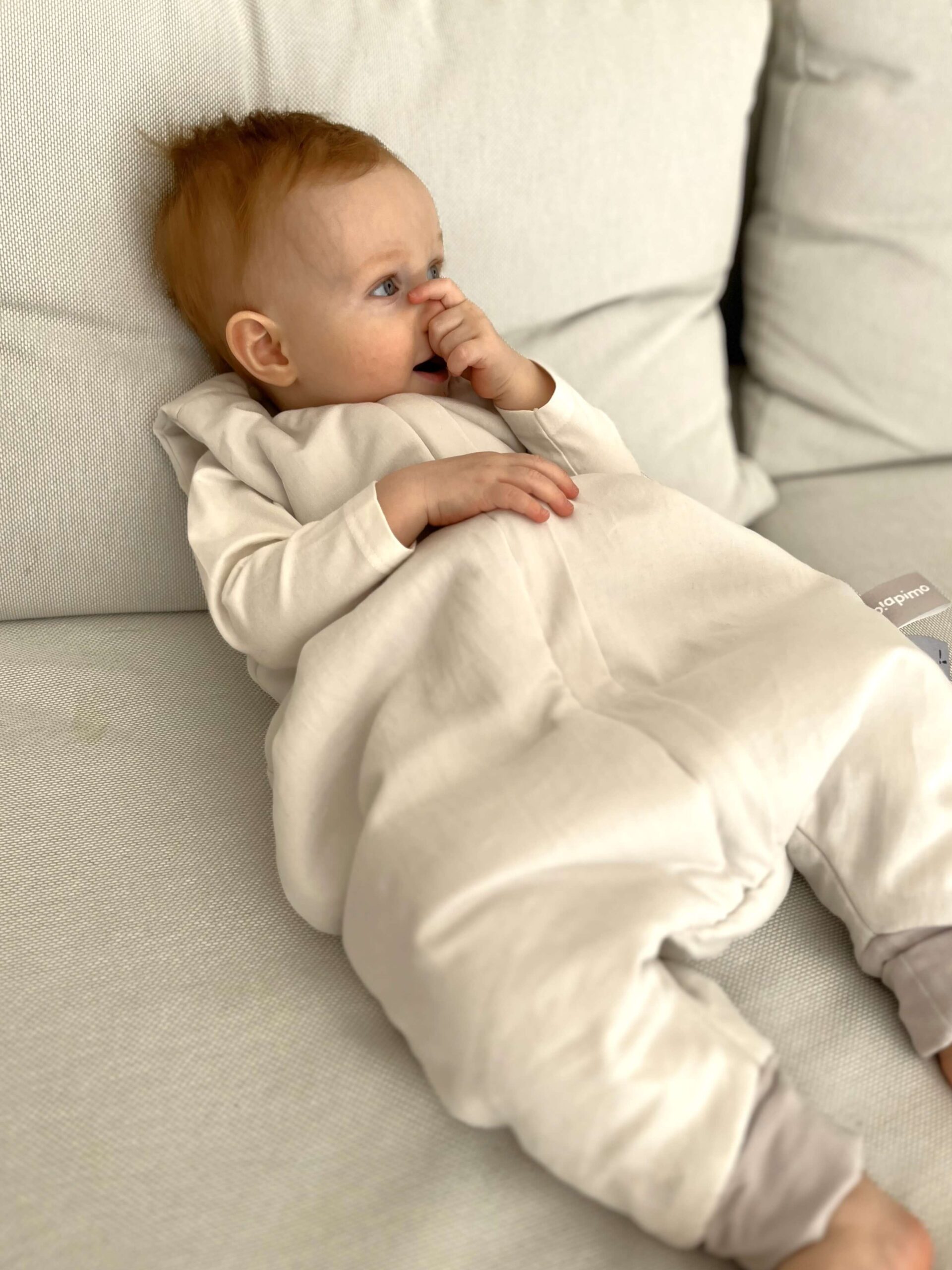 Co w nim takiego genialnego? Komfortowy krój dający Maleństwu pełną swobodę ruchów. Dzięki nogawkom dziecko bez problemów będzie mogło wstać w śpiworku i swobodnie się w nim poruszać. Brak rękawków, żeby nie ograniczać stałego dostępu powietrza. Wygodny dwustronny suwak pozwala rozpiąć suwak również od dołu, co jest pomocne podczas nocnego przewijania dziecka.