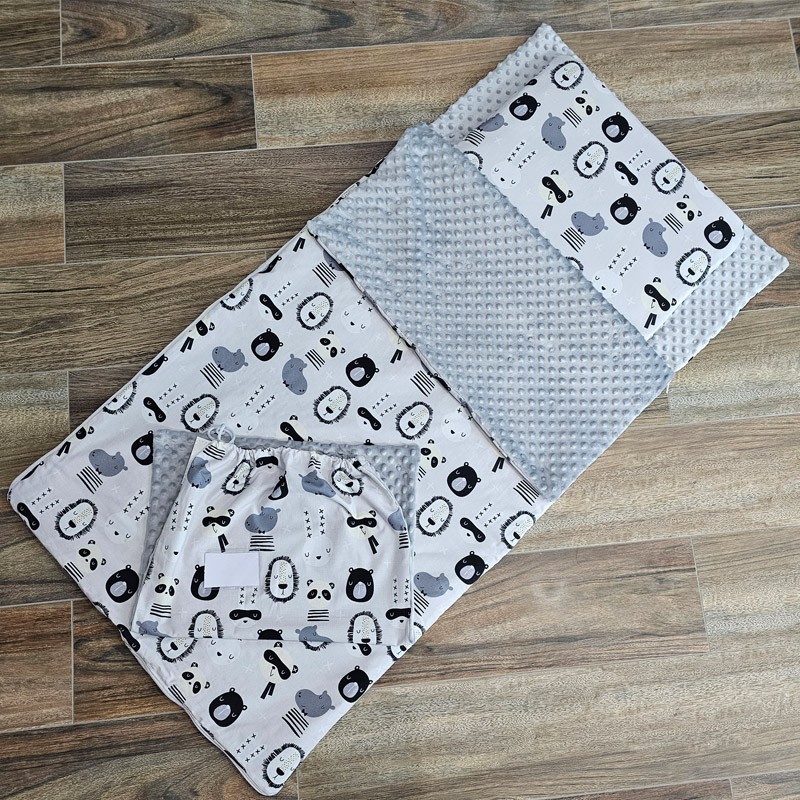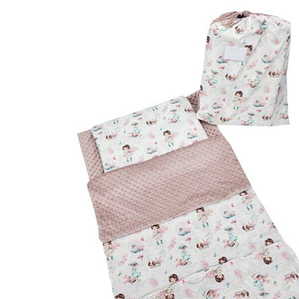 Wygodny śpiwór dziecięcy do spania to doskonałe rozwiązanie dla każdego maluszka. Śpiworek stanowi świetną alternatywą dla kołderki czy kocyka. Miękki i przyjemny śpiwór dla dziecka sprawdzi się nie tylko w domowym łóżeczku, może zastąpić tradycyjną pościel, ale przyda się także w innych sytuacjach – podczas leżakowania, nocowanek i w czasie letnich wyjazdów. Odpowiednio ciepły i wygodny zapewni komfortowy wypoczynek i zdrowy sen. W Zestawie znajduje się worek, do którego można włożyć śpiwór, poduszeczkę i piżamkę. Na worku jest specjalne miejsce gdzie można wpisać imię dziecka. Maluch według wzoru na worku z łatwością rozpozna swój śpiworek.