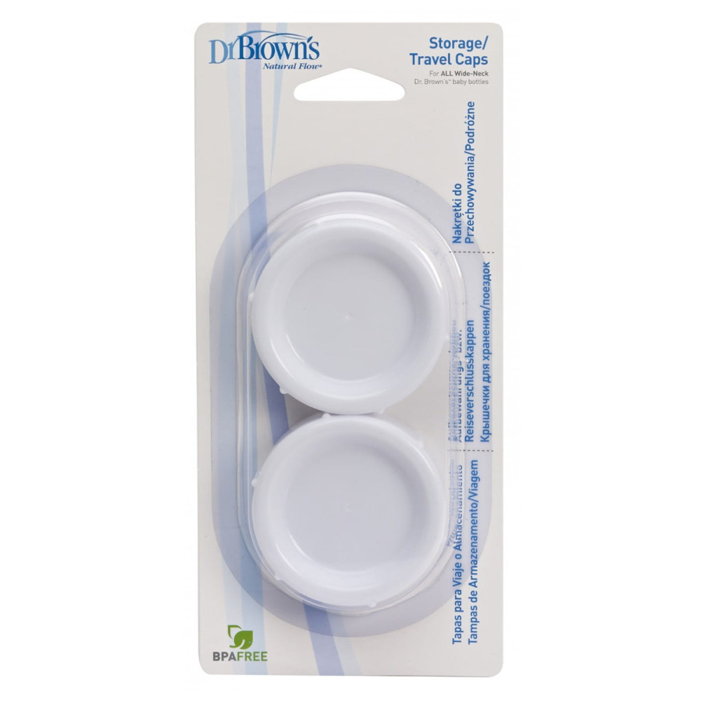 Nakrętki na czas podróży skutecznie zabezpieczą zawartość butelki przed wylaniem. Nakrętki pasują na butelkę Dr. Brown's z szeroką szyjką o pojemności 150ml i 270ml.