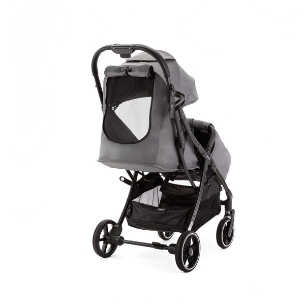Oparcie możesz dowolnie i płynnie regulować za pomocą paska (tzw. bezstopniowa regulacja oparcia), a podnóżek posiada 2 stopnie regulacji. W budce znajduje się okienko wentylacyjne z moskitierą, przez które możesz zajrzeć do dziecka. W tylnej części budki znajdziesz panel z kieszonką na drobiazgi, który po odpięciu dookoła staje się dużym oknem wentylacyjnym.