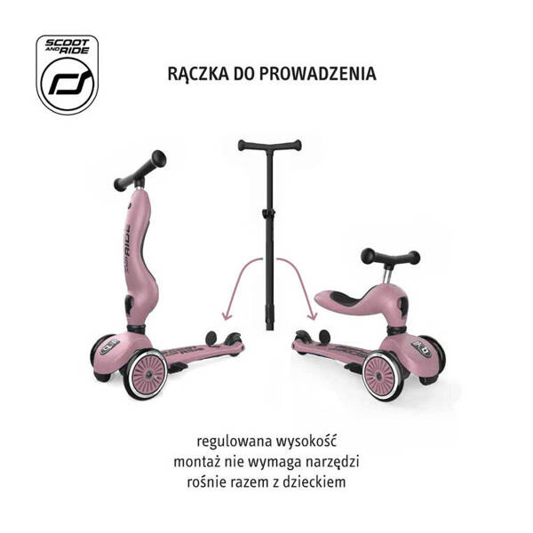 Highwaykick 1 Push and Go to innowacyjna hulajnoga z siedziskiem z rączką do prowadzenia dla rodzica i podnóżkami dla dziecka austriackiej marki Scoot & Ride. To idealne rozwiązanie dla aktywnych dzieci, które w dodatku „rośnie” razem z nimi!