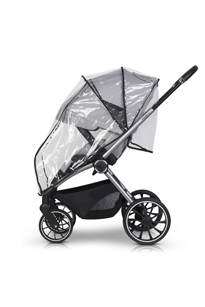 W zestawie z wózkiem otrzymujemy modną i praktyczną Tobę z systemem montażu do rączki wózka, pokrowiec na nóżki na chłodne dni oraz folię przeciwdeszczową.