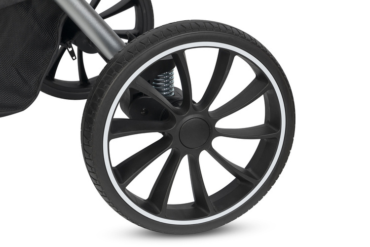 Bardzo dobra amortyzacja i duże żelowe koła zapewniają komfort zarówno dziecku jak i rodzicowi prowadzącemu wózek. Skok amortyzatorów jest na tyle duży, że wózek sprawia wrażenie miękkiego już od pierwszych dni użytkowania mimo, że dziecko jest jeszcze leciutkie. Przednie koła są skrętne i posiadają blokadę do jazdy na wprost. Szeroki rozstaw kół zapewnia łatwe skręcanie i manewrowanie w ciasnych pomieszczeniach. Duże tyle koła i kształt konstrukcji wózka zapewniają łatwe podpicie przy podjeździe na krawężnik.
