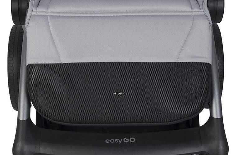 Tapicerka wózka dziecięcego EASYGO GIRO wykonana została z modnej dzianiny. W siedzisku zastosowana została specjalna sekcja z wentylowanej tkaniny odprowadzającej wilgoć. W górnej części oparcia znajduje się wygodna poduszka, którą można również łatwo zdemontować. Podnóżek został wykończony odporną na zabrudzenia tkaniną techniczną z poliuretanową powłoką.