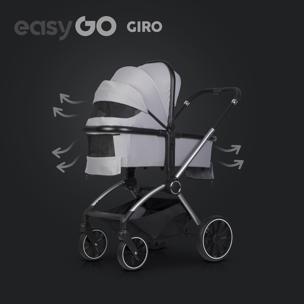 GIRO marki EASYGO jest nowoczesnym wielofunkcyjnym wózkiem dziecięcym przeznaczonym dla dzieci od narodzin do 22 kg (lub do wieku 4 lat). Posiada wszystkie cechy i funkcje, które charakteryzują dobry wózek wielofunkcyjny, a jednocześnie jego cena nie zrujnuje domowego budżetu.