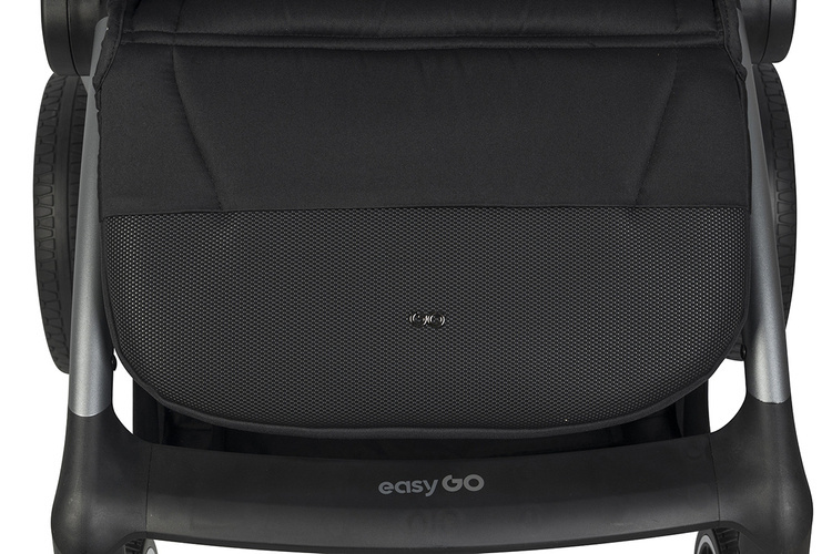 Tapicerka wózka dziecięcego EASYGO GIRO wykonana została z modnej dzianiny. W siedzisku zastosowana została specjalna sekcja z wentylowanej tkaniny odprowadzającej wilgoć. W górnej części oparcia znajduje się wygodna poduszka, którą można również łatwo zdemontować. Podnóżek został wykończony odporną na zabrudzenia tkaniną techniczną z poliuretanową powłoką.
