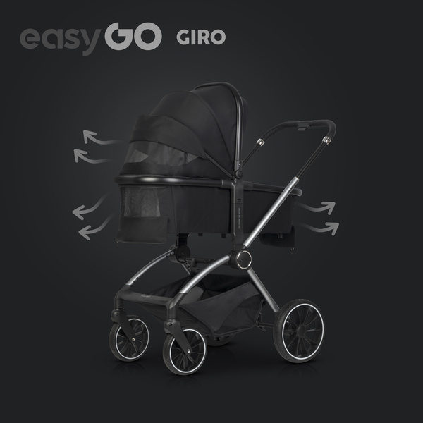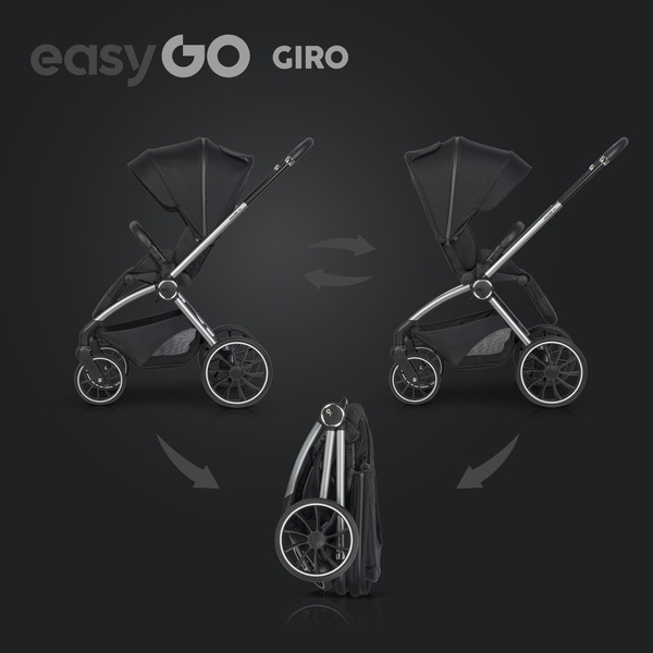 GIRO marki EASYGO jest nowoczesnym wielofunkcyjnym wózkiem dziecięcym przeznaczonym dla dzieci od narodzin do 22 kg (lub do wieku 4 lat). Posiada wszystkie cechy i funkcje, które charakteryzują dobry wózek wielofunkcyjny, a jednocześnie jego cena nie zrujnuje domowego budżetu.