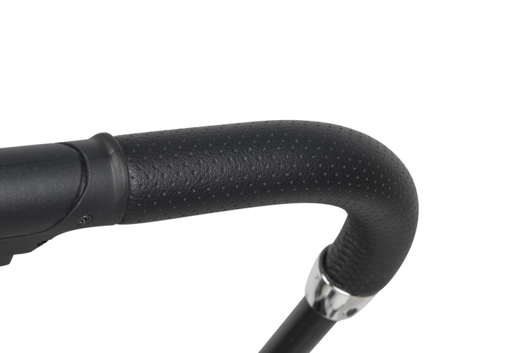 Teleskopowa rączka posiada duży zakres regulacji, dzięki czemu zapewnia wygodne prowadzenie zarówno osobom niskim jak i wysokim. Jej zaletą jest fakt, że nie tylko zwiększa wysokość rączki, ale również oddala ją od tylnego zawieszenia wózka. Nawet osoby w wzroście powyżej dwóch metrów nie będą zahaczać stopami o tylne zawieszenie przy najwyższym ustawieniu rączki.