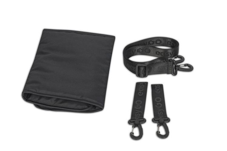 W zestawie z wózkiem otrzymujemy modną i praktyczną Tobę z systemem montażu do rączki wózka, pokrowiec na nóżki na chłodne dni oraz folię przeciwdeszczową.