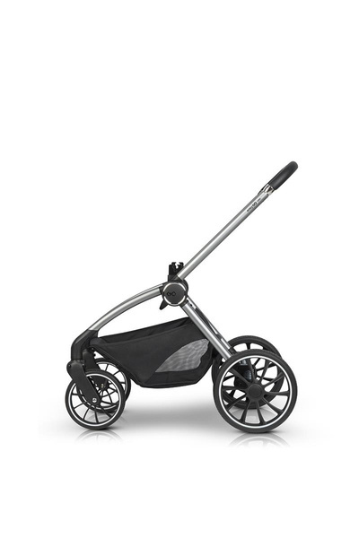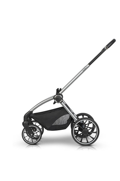 Ultra lekki aluminiowy stelaż posiada wahadłowy system składania obsługiwany jedną ręką. Umożliwia on złożenie wózka razem z siedziskiem niezależnie od tego czy jest zamontowane przodem czy tyłem do kierunku jazdy.