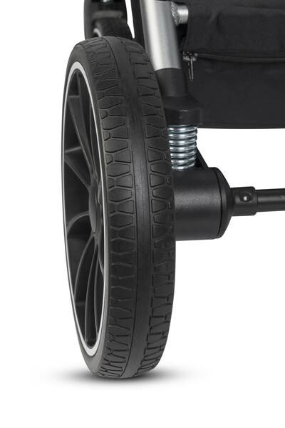 Bardzo dobra amortyzacja i duże żelowe koła zapewniają komfort zarówno dziecku jak i rodzicowi prowadzącemu wózek. Skok amortyzatorów jest na tyle duży, że wózek sprawia wrażenie miękkiego już od pierwszych dni użytkowania mimo, że dziecko jest jeszcze leciutkie. Przednie koła są skrętne i posiadają blokadę do jazdy na wprost. Szeroki rozstaw kół zapewnia łatwe skręcanie i manewrowanie w ciasnych pomieszczeniach. Duże tyle koła i kształt konstrukcji wózka zapewniają łatwe podpicie przy podjeździe na krawężnik.