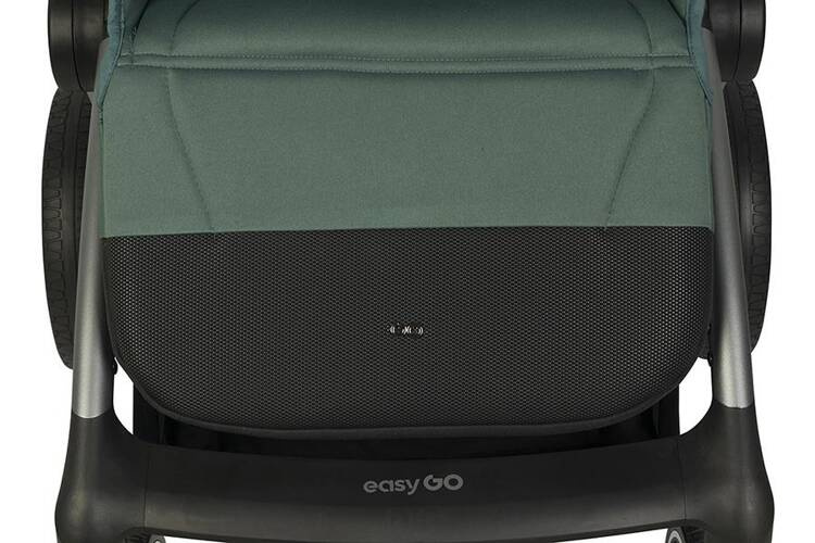 Tapicerka wózka dziecięcego EASYGO GIRO wykonana została z modnej dzianiny. W siedzisku zastosowana została specjalna sekcja z wentylowanej tkaniny odprowadzającej wilgoć. W górnej części oparcia znajduje się wygodna poduszka, którą można również łatwo zdemontować. Podnóżek został wykończony odporną na zabrudzenia tkaniną techniczną z poliuretanową powłoką.