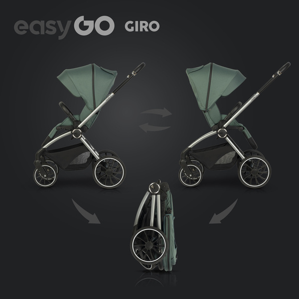 GIRO marki EASYGO jest nowoczesnym wielofunkcyjnym wózkiem dziecięcym przeznaczonym dla dzieci od narodzin do 22 kg (lub do wieku 4 lat). Posiada wszystkie cechy i funkcje, które charakteryzują dobry wózek wielofunkcyjny, a jednocześnie jego cena nie zrujnuje domowego budżetu.