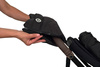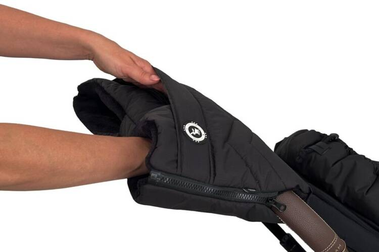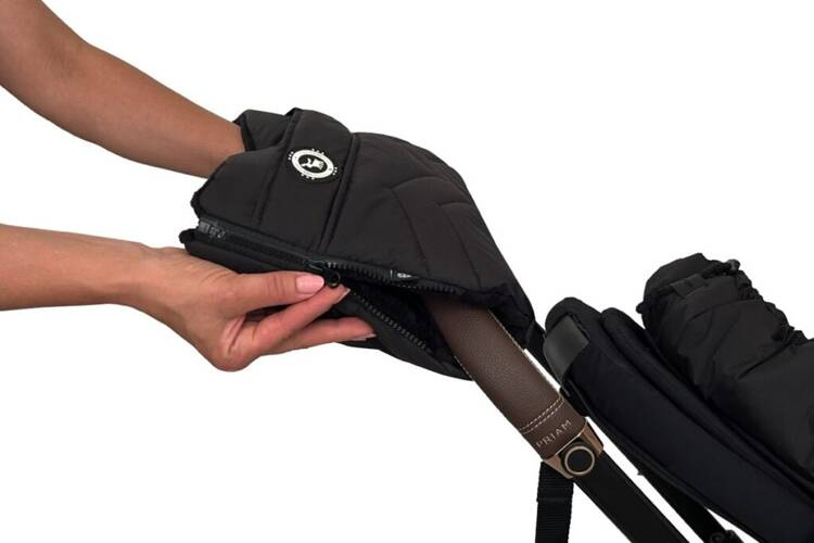 Mufka do wózka jest instalowana na rączce, za pomocą bocznych zamków i rzepów. Bardzo łatwo można ją założyć i zdjąć z rączki wózka.